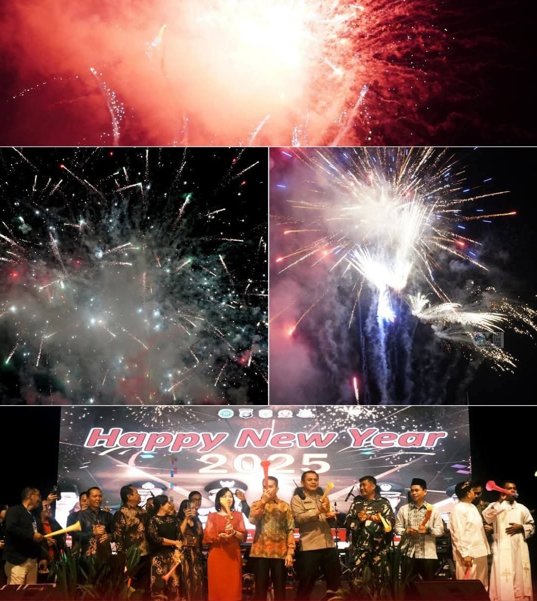 Perayaan Malam Pisah Sambut 2024-2025 berlangsung meriah dengan hiburan musik dan pesta kembang api. Masyarakat antusias menyaksikannya hingga acara usai.(Pink)